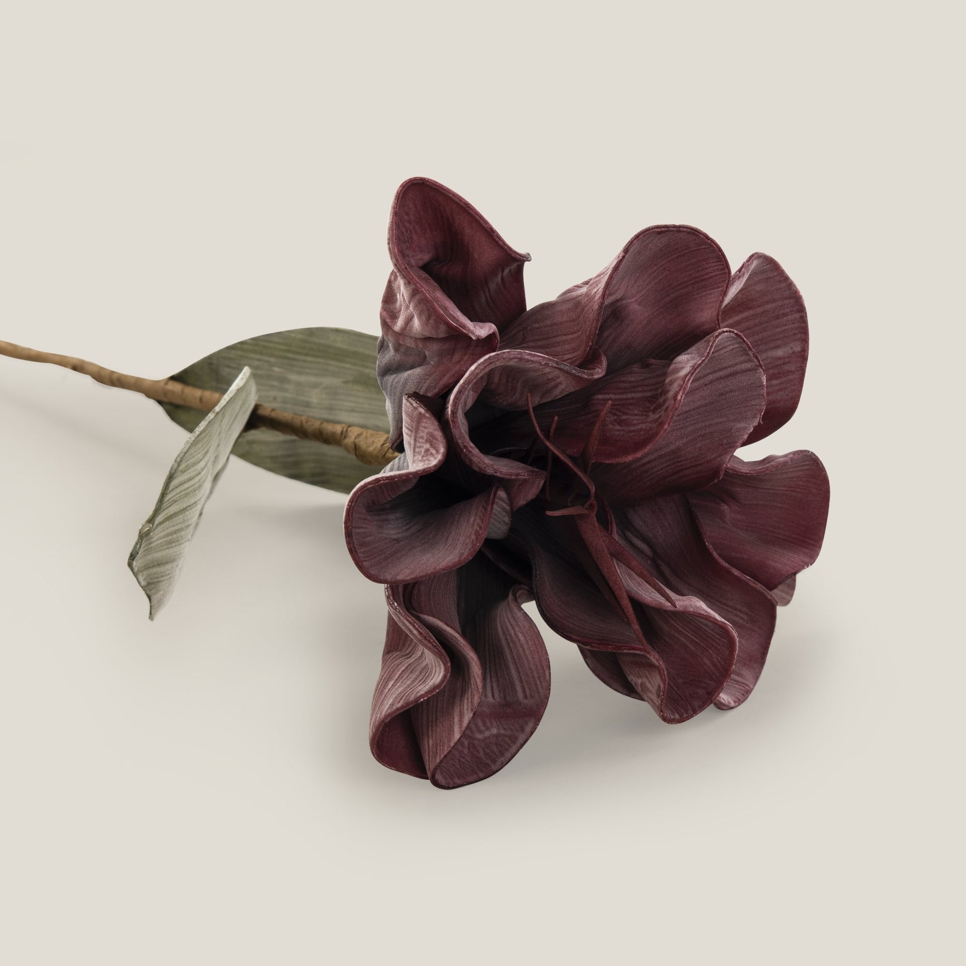 Maroon Magnolia , our perennial, year-round bunch of a bloom that is details-perfect - with opened petals, to reveal long stamens. This artfully hued Maroon monotone ombre petals create a Look great for any flower ensemble. Pair it with our tall vases & urns for your very own tropical hot house.
